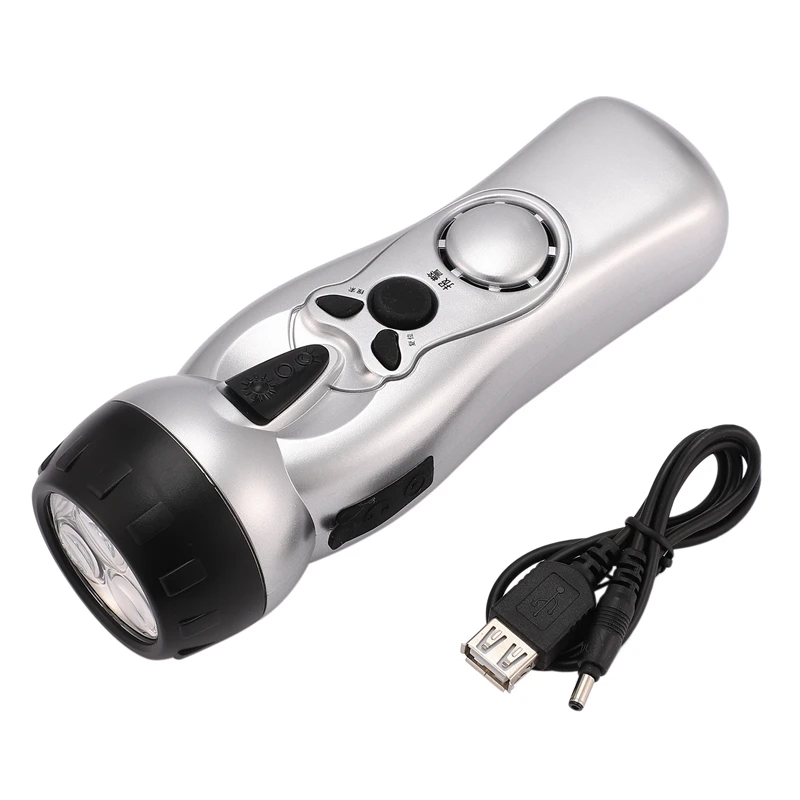 Portable FM Flashlight Radio Support Led Emergency Lighting Hand Crank Generator Radio Dynamo Power