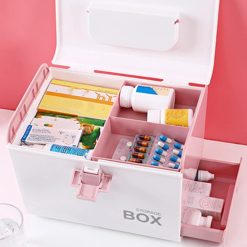Medicine Box First Aid Box Storage Box Plastic Container First Aid Box Portable Multi-Layer Large C