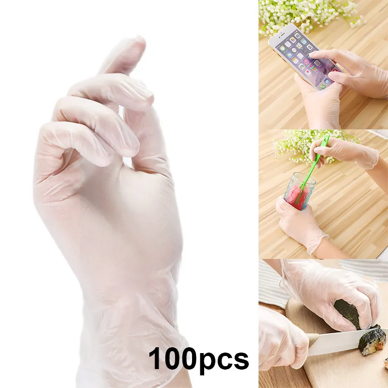 100pcs Tear Resistant Disposable Gloves Powder Free Oil-proof Cooking PVC Transparent Gloves BHD2