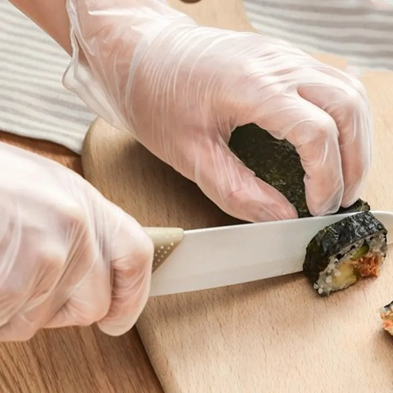 TOP 100pcs Tear Resistant Disposable Gloves Powder Free Oil-proof Cooking PVC Transparent Gloves BHD2